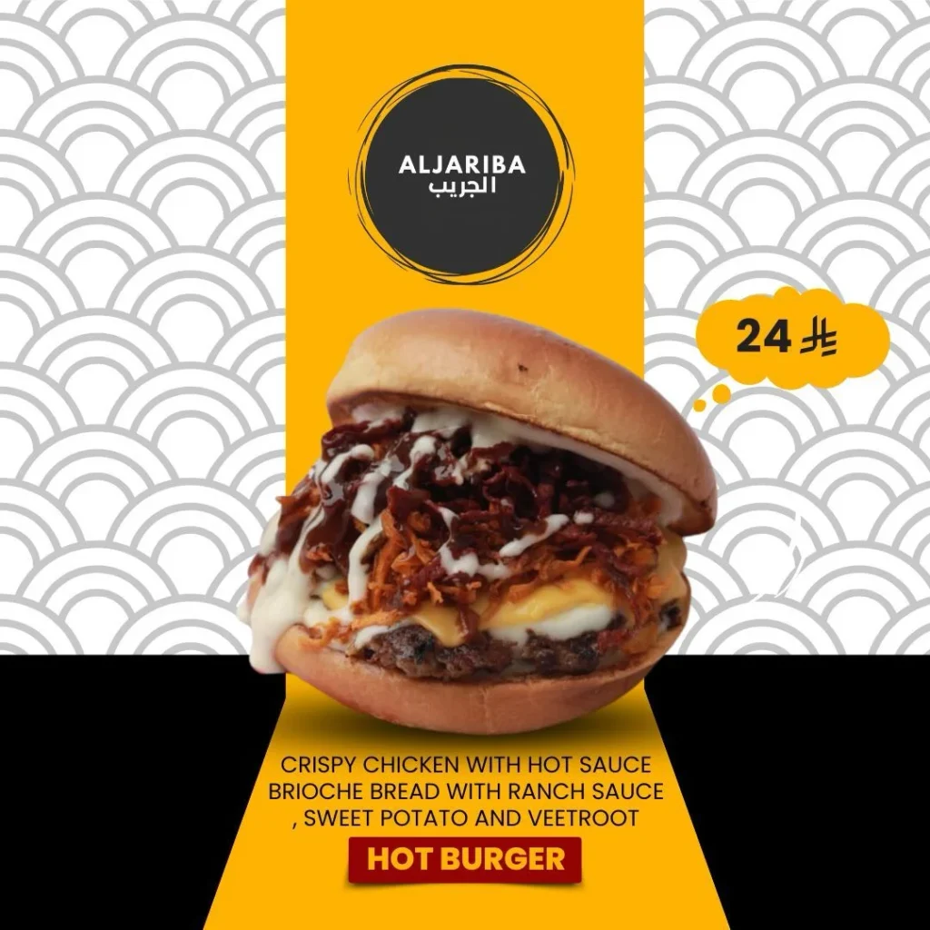 Crispy chicken with American cheese brioche bread sauce al jariba and coslo